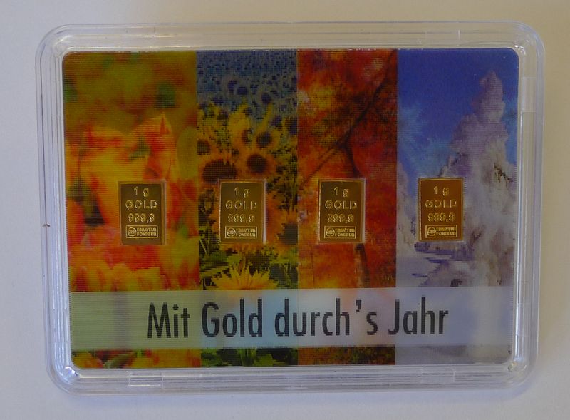 Goldbarren 4x1 Gramm Valcambi Geschenkbarren Flipmotiv